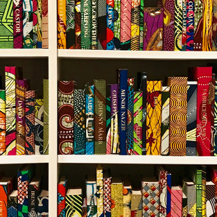 Yinka Shonibare: Nod to the input to our society of second generation immigrants, Names to each book printed onto traditional fabrics. Culture and history. Cultural appropriation. National identity. This is an ongoing piece – online.